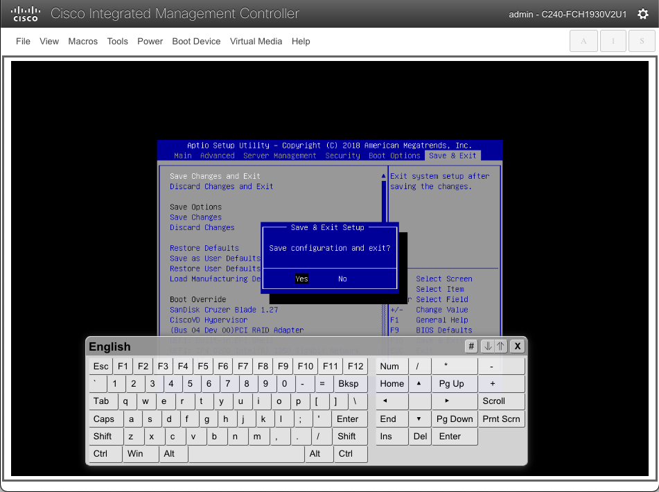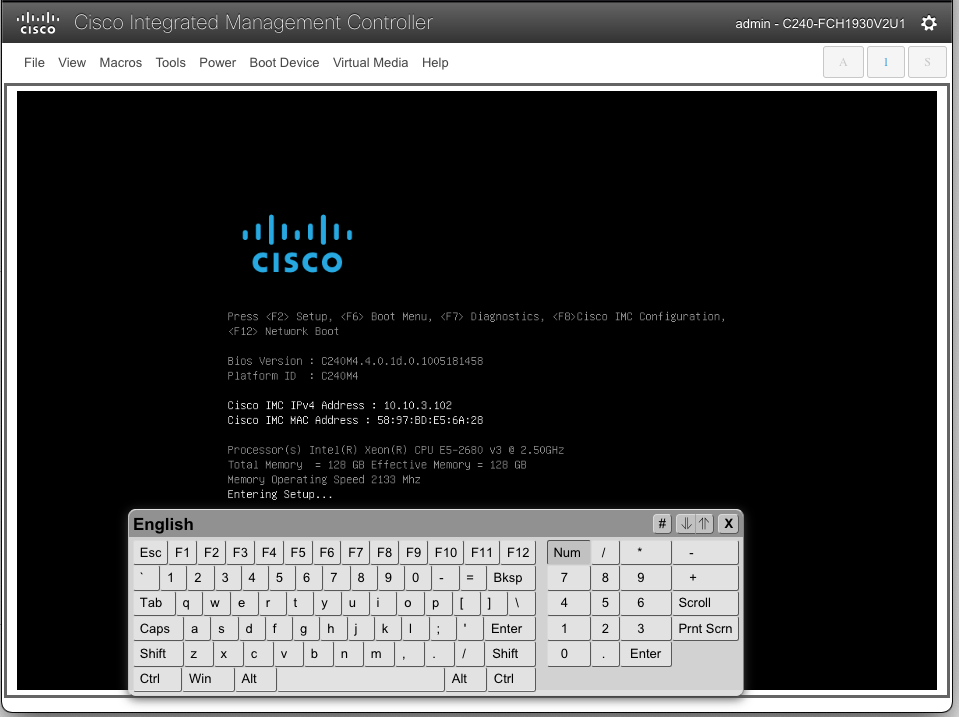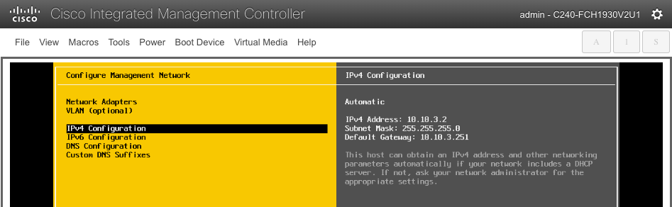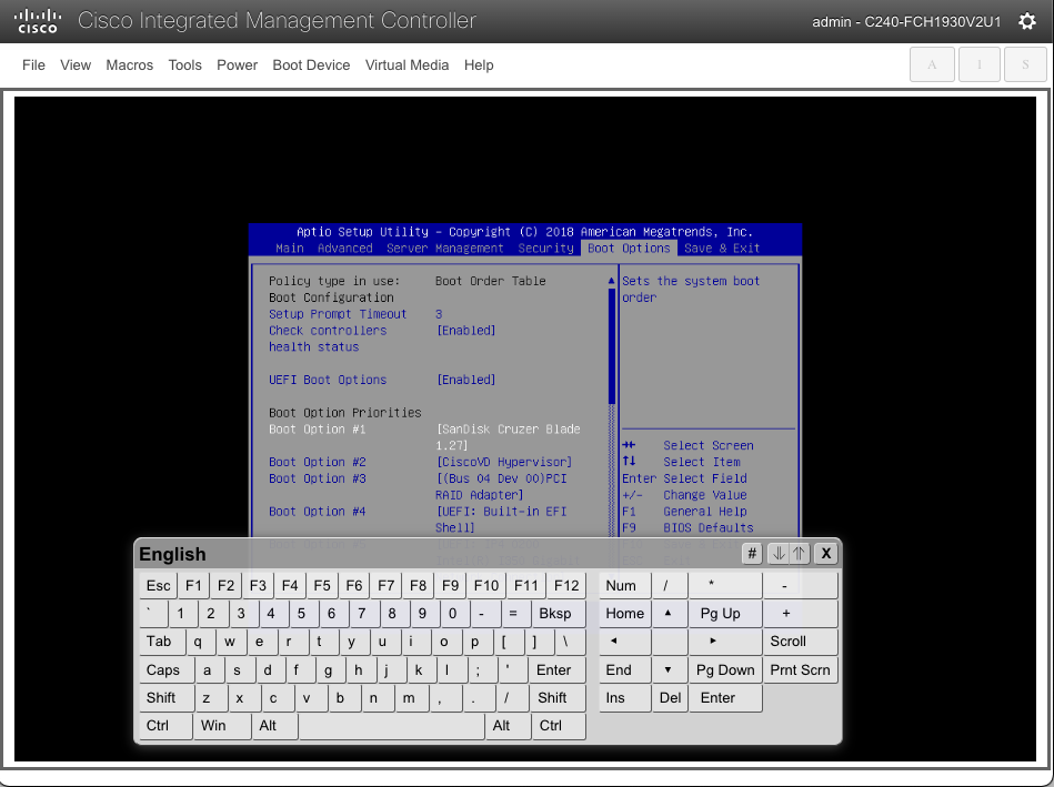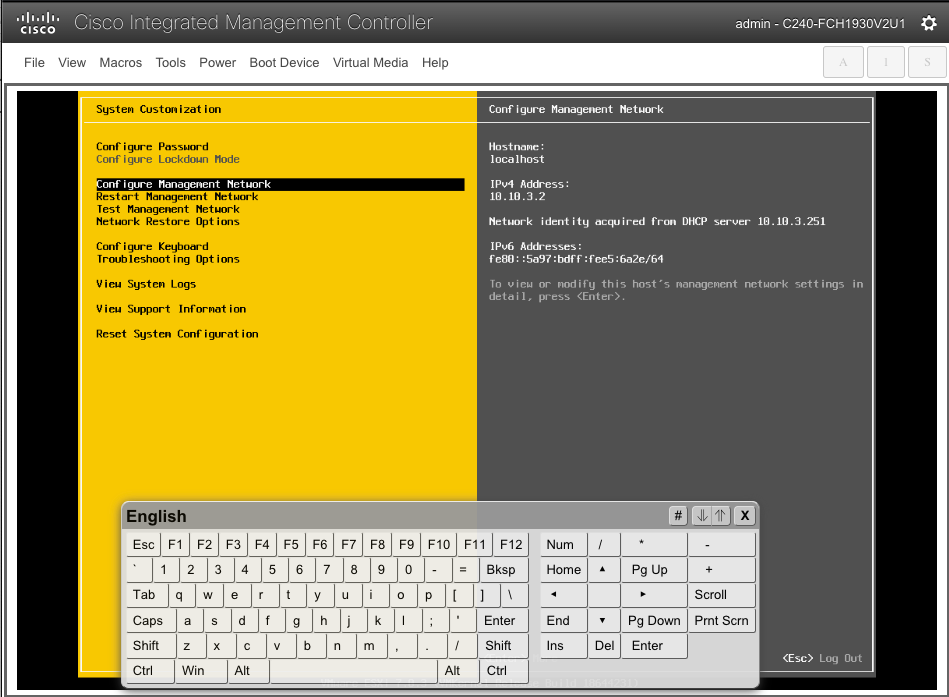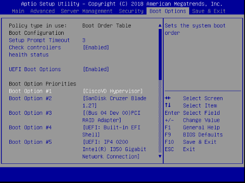 Once the installation was completed, I rebooted the host, you can either remove the USB or if you can't be bothered to walk to the Server like me I just hit F2 from the KVM and changed the boot priority back to the Cisco virtual device named Hypervisor.