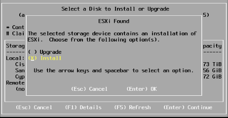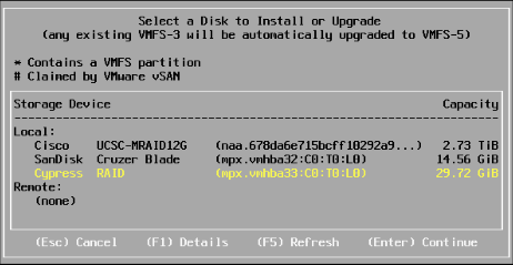 Interestingly the ESXi installer recognises the storage device as "Cypress RAID" and to be honest I only linked this to the SD card because of its storage capacity. So I selected this and hit enter and opted for a clean install.