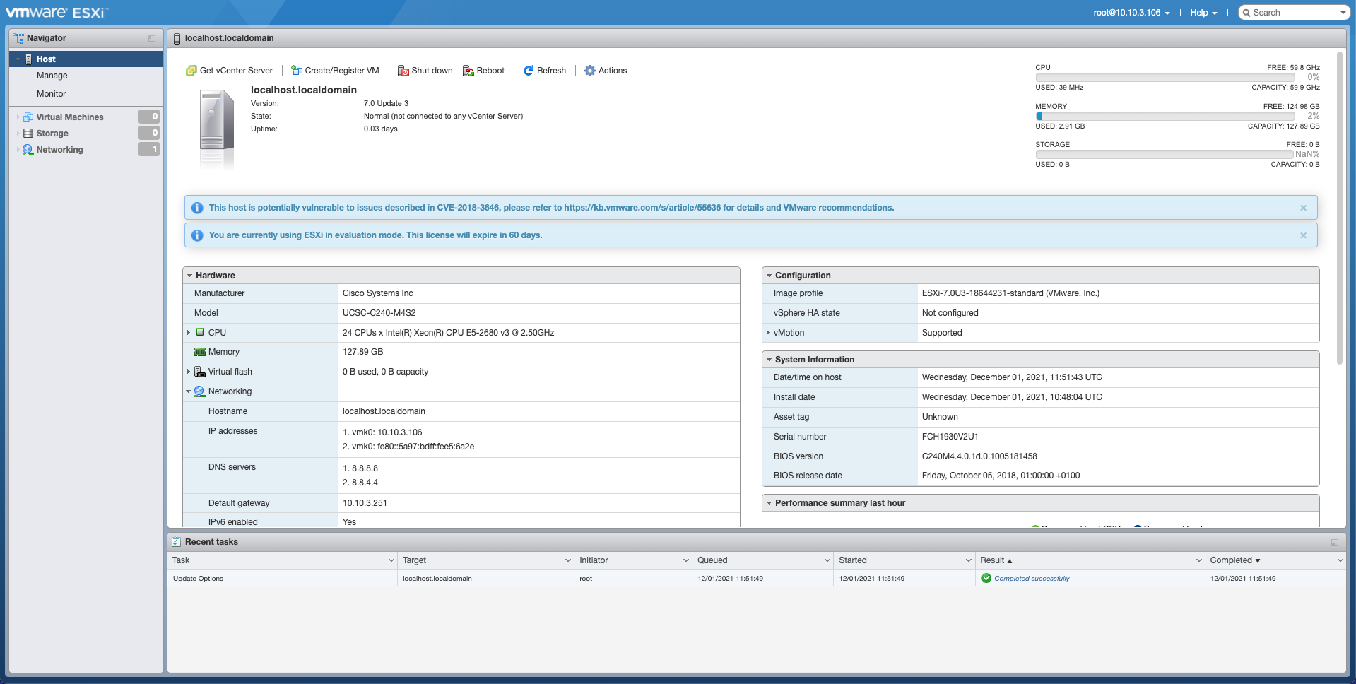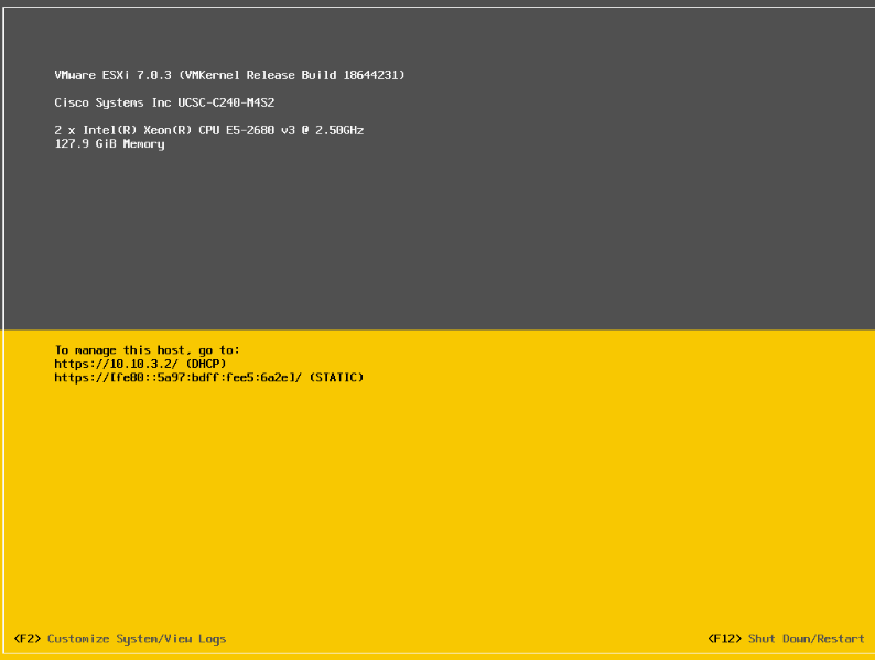 Happy days! A fresh ESXi vSphere 7 installation on my shiny Cisco UCS C240 M4 server....job done!